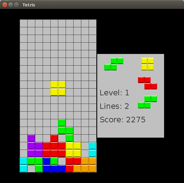 This project is something I did in high school when I was first becoming decent at programming and was one of the larger projects I had done up until that point. Essentially, I made a duplicate of the game Tetris with Java and the Java’s native Swing GUI library. I tried to make the core gameplay as close to the original as possible as well as adding features that keep track of the user’s high scores, allow the user to customize the controls, and adjust other various options. All of the core logic for the game is programmed with the Java programming language and Java’s swing library handles all of the GUI components, including the buttons and dialogs for the main menu and the drawing of the actual visual components to the screen when playing the game.
